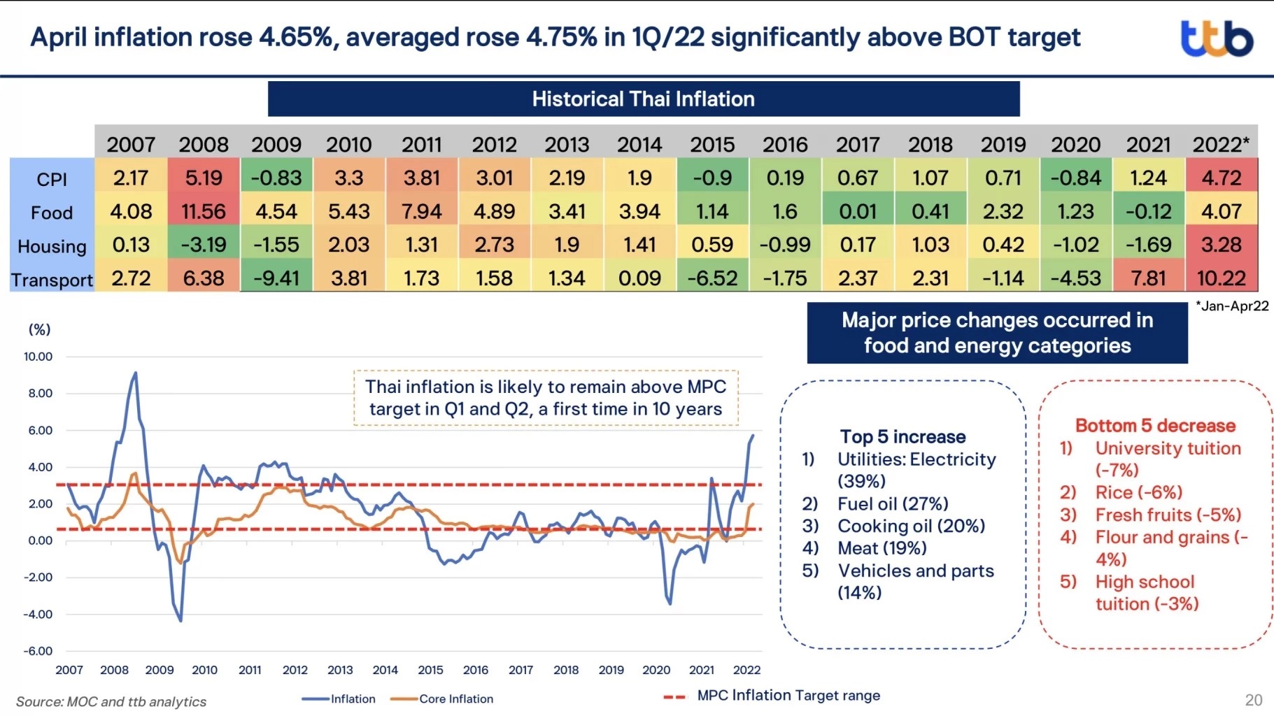 ภาพที่สะท้อนกลับออกมาจากมุมมองของ กนง.ในเรื่องเงินเฟ้อที่กระทบต่อประชาชนที่เด่นชัดที่สุดคือ “ในปีนี้ราคาข้าวของเครื่องใช้ ในชีวิตประจำวัน ค่าเดินทาง อาหาร การกินของประชาชนคนไทยจะแพงที่สุดในรอบ 16-20 ปีเลยทีเดียว”